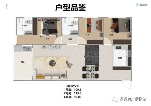 三房中厅:99-80-109-115.8㎡